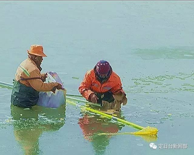 環(huán)衛(wèi)工人清理河道垃圾 還碧水予藍(lán)天