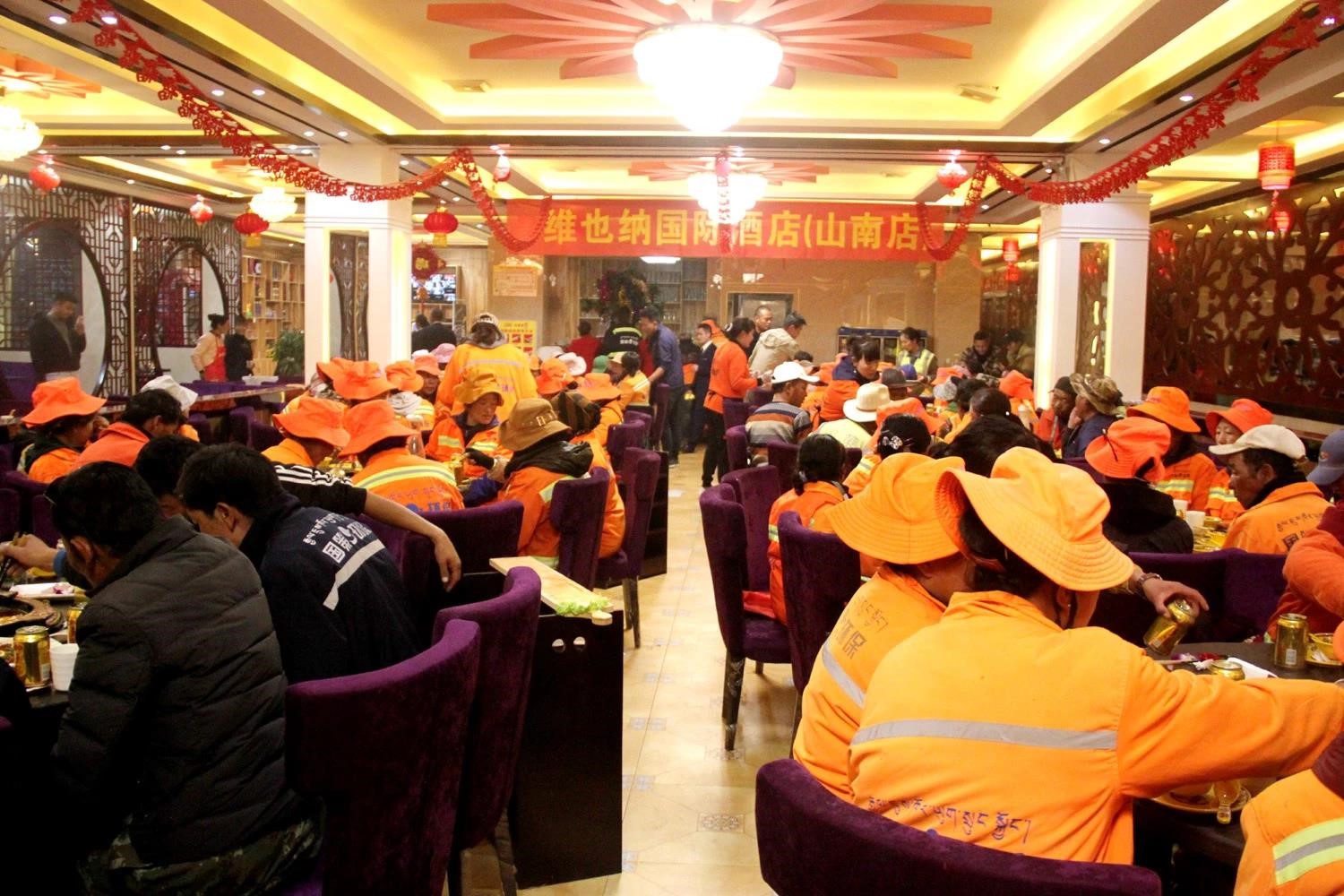 慰問活動結束后,主辦方邀請所有環(huán)衛(wèi)工人同吃火鍋宴。秘制火鍋湯料,冒著熱氣兒,散著香味兒,開胃小菜,各種醬料,時鮮蔬菜,魚肉等豐盛的菜品讓“城市美容師”們吃的既暖胃,又暖心。